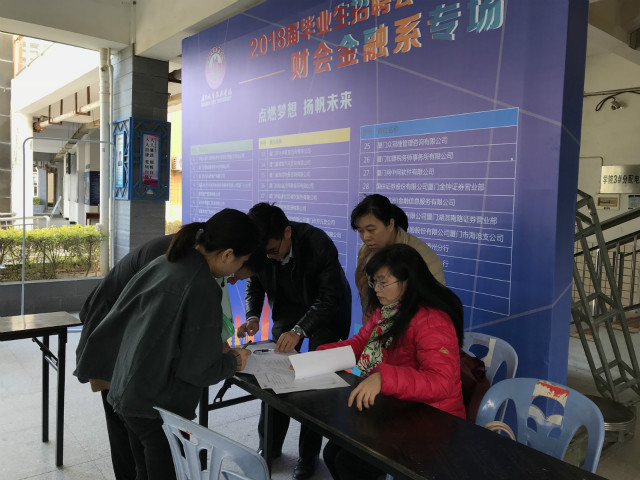 其中有多家公司已连续几年来我校招聘,公司负责人表示我校财金系的学生专业素质好,适应能力强,具有吃苦耐劳的品德,能够将学校所学到的知识技能灵活运用到实际工作当中,公司非常愿意招聘使用我校的毕业生。