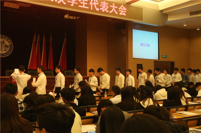 在庄严的国歌声中,本次学代会正式拉开帷幕。