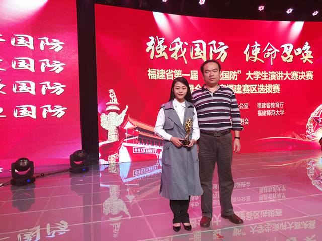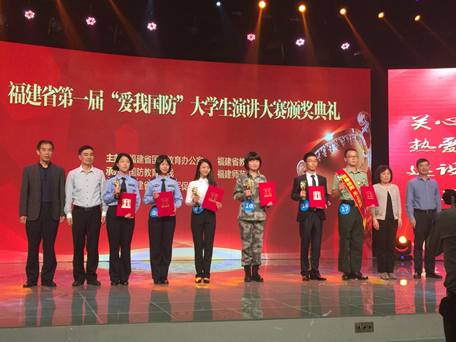 10月30日,“强我国防使命召唤”福建省第一届“爱我国防”大学生演讲大赛决赛暨全国大赛福建赛区选拔赛在福建师范大学隆重举行。经过各高校预赛、网络大赛,最后由专家评选出的18名(组)晋级决赛的优秀选手在此巅峰对决,我校旅游系16级旅管B班林晨憙同学的《强大的国防让国民更有安全感》主题演讲以及现场抽选的“南京大屠杀死难者国家公祭日”即兴演讲多次感动了现场的评委和观众,赢得了阵阵热烈的掌声,最终荣获了三等奖(高职院校第一名)。本次大赛仅设一等奖1名,二等奖2名,三等奖5名。