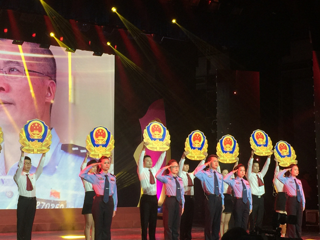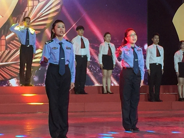 11月3日晚在市青少年宫举行的决赛中,我校党委书记蒋先立应邀作为领导嘉宾和评委出席。2015级毕业生陈垚鑫、陈佳蓉代表同安区参赛,演绎“从警既为民、忠魂铸金盾”的同安汀溪好民警叶建议的故事,陈垚鑫还担纲主角扮演叶建议,生动的表演,感人肺腑,催人泪下。
