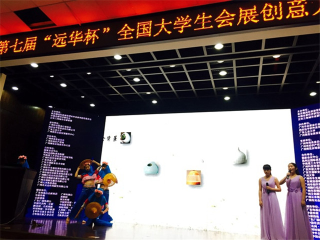 此次全国大学生会展创意大赛以“互联互通,竞优融合”为主题,内容包括创意策划、创意设计和成果类等比赛项目。由李华伟和李文刚两位老师担任指导教师、2015级会展班邹敏欢等六位同学组成的参赛队,以《闽南传统工艺品展览会》为策划主题,大胆突破陈旧单一的ppt加讲解的比赛模式,代之以融朗诵、惠安女舞蹈、陶笛吹奏和工艺品实物展示为一体的艺术表演形式,浓郁的闽南风情和艺术氛围,令观众和评委耳目一新。由吴璇老师担任指导教师、2015级会展班吴宇婷等五位同学组成的参赛队,以《闽台文创农业展》为策划主题,引入了情景剧式的艺术表现形式,创意独特鲜明,风格清新唯美。在展台环节,两个队的布展所表现出的闽南传统工艺品独特魅力和感人的“阿嬷土地情怀”引起了共鸣,获得一致好评。