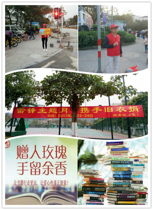 青年志愿者协会为提高同学安全出行意识,在校门口的十字路口举行了“拒绝低头族,关注红绿灯”交通志愿服务活动;为贫困山区开展旧衣捐赠活动;开展文化扶贫,发动捐书活动。
