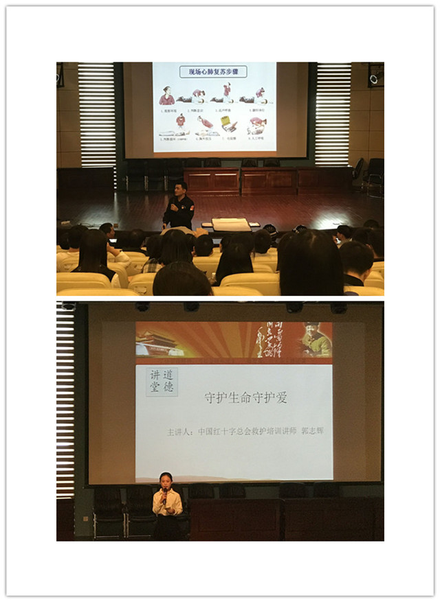 电子系和商贸系共同举办了以“弘扬雷锋精神,做好金砖东道主”为主题的道德讲堂活动,邀请到了中国红十字总会救护培训讲师国志辉先生为同学们教授止血、包扎、骨折固定等现场初级救护技能,并着重讲解和演示了心肺复苏急救中的心脏按压、人工呼吸的操作方法,提高同学们的助人能力。