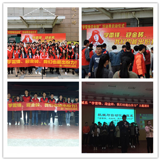 为“因事而化、因时而进、因势而新”做好学生思想政治工作,机械系学生党支部、团总支把“学雷锋、迎金砖、我们也能出份力”作为活动载体,一方面鼓励学生积极报名参加厦门金砖会晤志愿者;组织学生到邮轮中心、天竺山社区书院、金安社区书院、BRT车站进行传统的志愿者活动。另一方面,在各团支部广泛开展主题团日活动,并从日常生活中引导学生“今天你雷锋了吗?”---把学雷锋转化成微笑待人,主动打招呼,不穿短裤、背心、拖鞋到教室;自觉排队购买饭菜,不拥挤、不喧哗、不插队的行为方式——把学雷锋转化成上课不迟到、不早退、不跷课;认真听讲,不玩手机的学习方式——把学雷锋转化成“早起床、早锻炼、吃早餐、不迟到”注意寝室、食堂卫生,不随地吐痰,乱扔垃圾,保持环境卫生的生活方式。让雷锋精神在“学”上开花,“行”上结果,在机械系形成“人人学雷锋、天天学雷锋、时时有雷锋”的良好氛围。