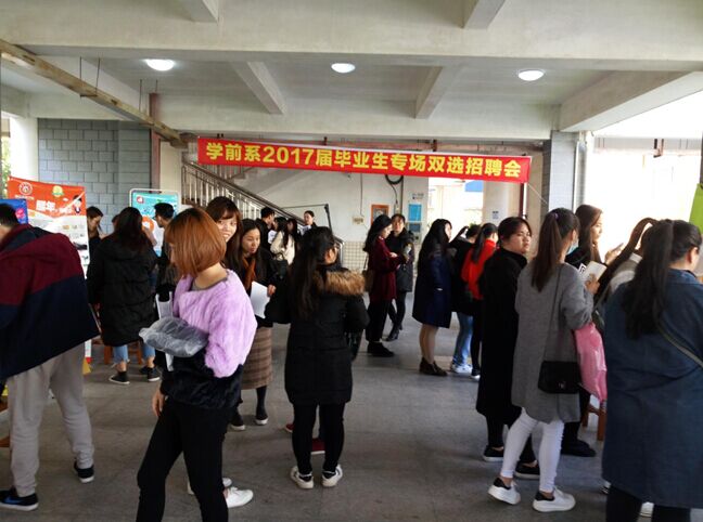 12月29日下午,学前教育系2017届毕业生专场双选招聘会在我校举办,共吸引了二十多家业内知名的公立(民办)幼儿园、早教机构、教育培训机构参加,为该系一百多名毕业生提供了超过250个实习就业工作岗位。