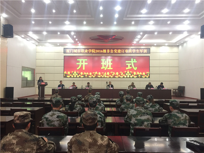 2月19日下午,由厦门市委组织部(市委非公企业工委)和我校联合举办的2016级非公党建订单班军训开班式在第三十一军教导大队举行。第三十一军教导大队大队长袁乃凤,我校党委书记蒋先立,非公党建研究所负责人刘建生教授,办公室、学工处、团委、思政部、体育教研部等相关部门负责人、老师和参训教官、学生参加了开班式。开班式由党委委员、办公室主任王育培主持。