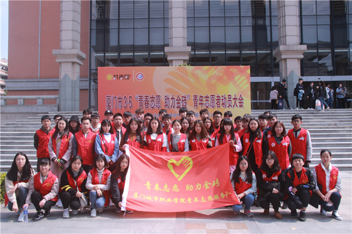 3月4日上午,我校志愿者由学校党委委员、办公室主任王育培,校团委书记黄超带队赴集美大学诚毅学院参加厦门市“青春志愿,助力金砖”青春志愿者动员大会。