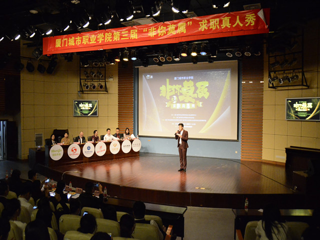 12月14日下午,第三届“非你莫属”求职真人秀在演播厅举行。活动由学工处、就业指导中心主办,就业创业协会承办,厦门市生涯规划与发展协会与我校职业发展与就业指导教研室协办。