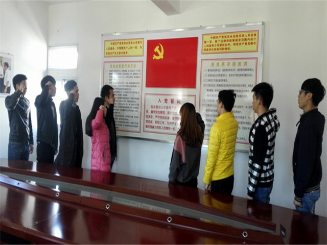 “我志愿加入共产党,拥护党的纲领,遵守党的章程……”,全体学生预备党员在军营村的党员会议室,面对着党旗进行庄严宣誓,郑重地在党员承诺书上签上了自己的名字。