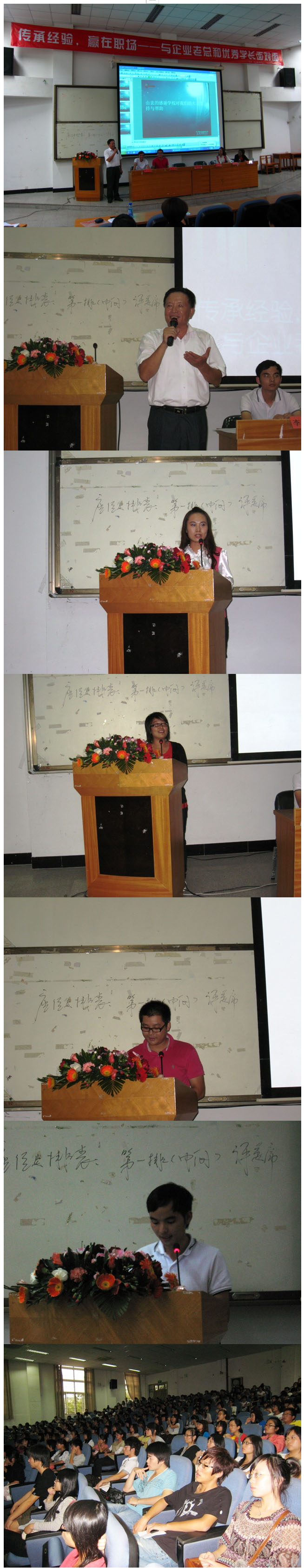 企业老总黄国富首先把他的祝福送给以上4位毕业生代表。他以身边的四个小故事从不同角度来告诉同学们要有从基层开始打拼的心态,要有目的地打工,要从身边寻找机会锻炼自己的心态和毅力,要提高自己的语言表达能力、沟通能力和团队合作精神。他以自身招聘经验为例,告诉学生们在应聘时一定要亮出自己的闪光点,不要犯低级的错误。在求职、就业中首要的是心态,步入大三后,要把心收回来,专心致志地评价自己,对自己想找的工作要有初步的策划,认真对待每次应聘。应聘只是敲门砖,真正展现自己的是在工作中处理问题。他的演讲幽默风趣、酣畅淋漓、寓意深刻,让人受益匪浅。他对本次系列活动“打造职场达人”做了自己的理解阐述,“达”有三层意思,“识达”,要能拿得起放得下,“通达”,对周围的事都要知道、了解,“豁达”,能够宽容别人对自己的误解。